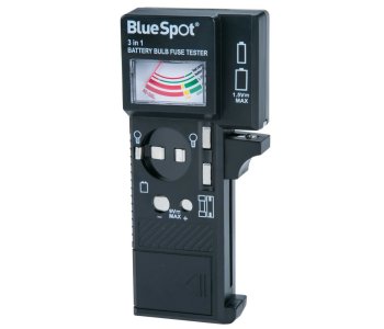 The Blue Spot Tools Battery Tester checks the condition of batteries, bulbs and fuses before discarding