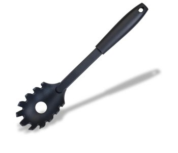 Function: thanks to the pronged scoop, this easily helps you to strain and drain your pasta, spaghetti or noodles directly from pot to plate, the versatile kitchen tool is suitable for all types of spaghetti or pasta from fusilli, linguini, penne and more, not only this but it comes with a handy portion hole, so you cook just the right amount of pasta
