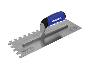 The Faithfull Prestige Notched Trowel has a high-grade stainless steel blade with 2 notched sides ideal for the application of adhesive prior to the setting of wall or floor tiles