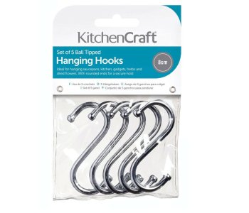 Ideal for a variety of different hanging requirements, from hanging pots to kitchen gadgets, to dried herbs and flowers, this handy Kitchen Craft pack of five small, ball tipped hanging hooks are perfect to suit any kitchen colour and style