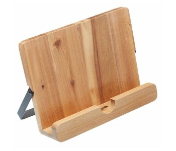 Made with responsibly sourced acacia wood, this natural cookbook and tablet stand features an integral wooden recess to hold both cookbooks and tablet devices such as iPads at the ideal reading angle, perfect when following recipes
