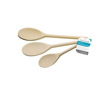 Ideal for use on non-stick surfaces, this highly useful set of three solid beech wood cooking spoons are sourced from sustainable, managed European forests