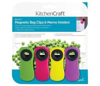 Ideal for re-sealing bags, packets and also holding memos, this set of four assorted coloured, extra strong multi purpose clips all feature a rubber grip to help clip items easily and securely