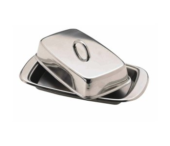 Stylishly serve a whole slab of butter at the table with this high quality stainless steel rectangular covered butter dish