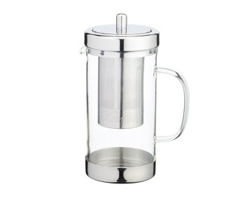 Contemporary style, heat resistant borosilicate glass teapot with a stylish integral removable stainless steel infuser and lid, with an easy to hold handle