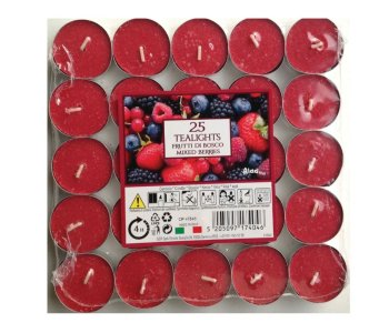 25 Pack Mixed Berries 4hr Tealight Tealights are the best-known candles for creating a cosy ambience and your home should never be without them!