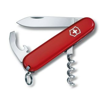 The Waiter Swiss Army Knife has large blade, combination tool with bottle opener, can opener, screwdriver and wire stripper, a corkscrew, a keyring, tweezers and a toothpick